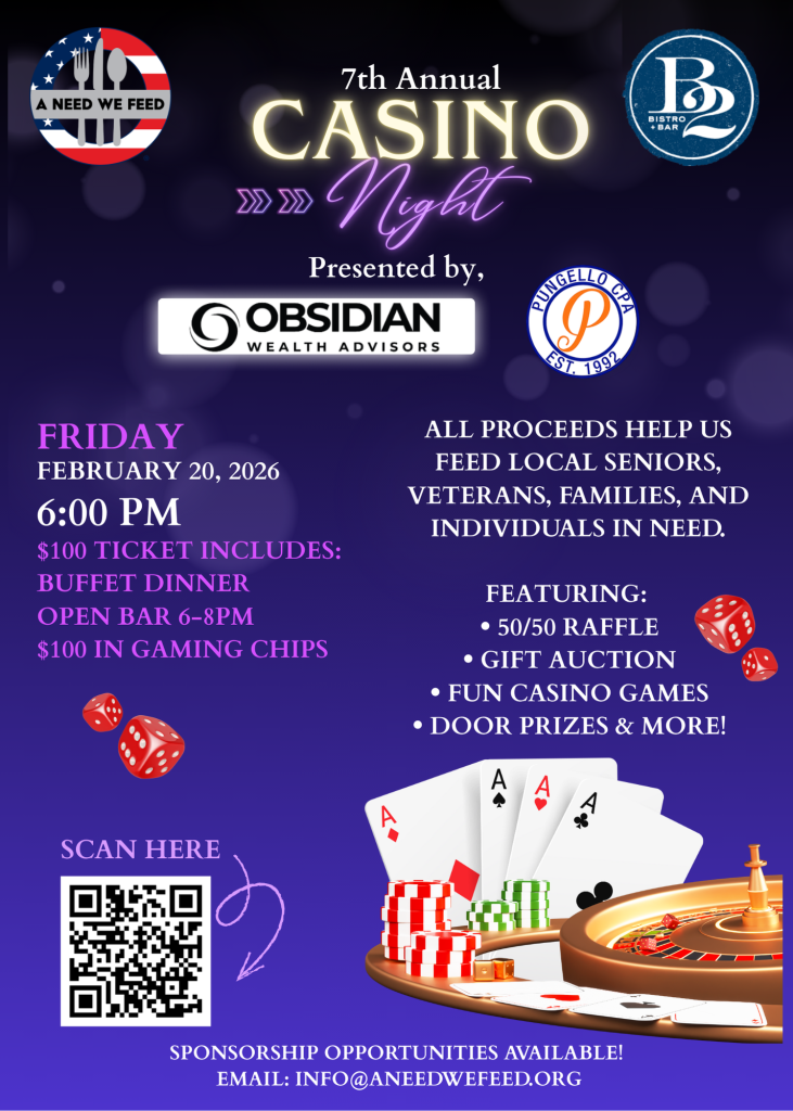 Join us for a night of excitement and giving back at our 7th Annual Casino Night in support of A Need We Feed’s mission to combat hunger in the Ocean County, NJ community!