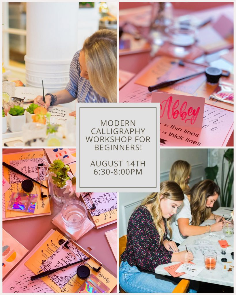 You’ll be introduced to modern calligraphy with a pointed dip pen and ink in this beginner level workshop✒️We will cover all the basics and prepare you to add those unique lettered details to your snail mail, wedding paper goods, home decor, and more! The perfect crafty night out!
