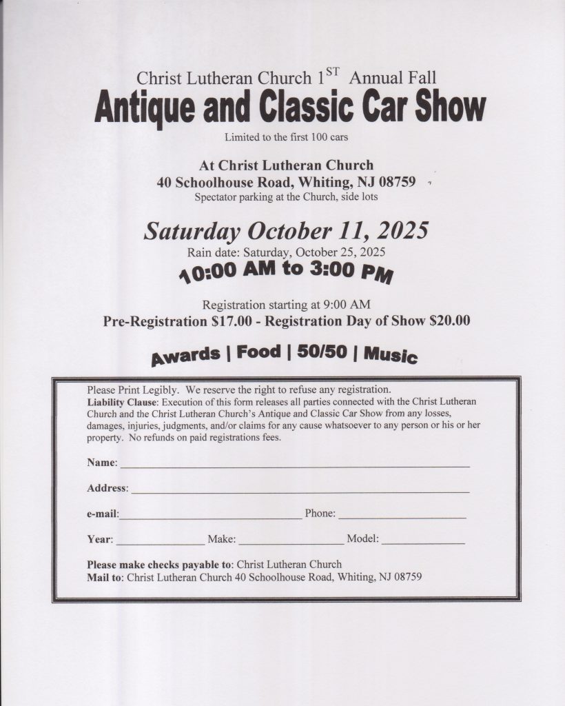 Our first annual fundraising Antique & Classic Car Show to benefit Christ Lutheran Church.