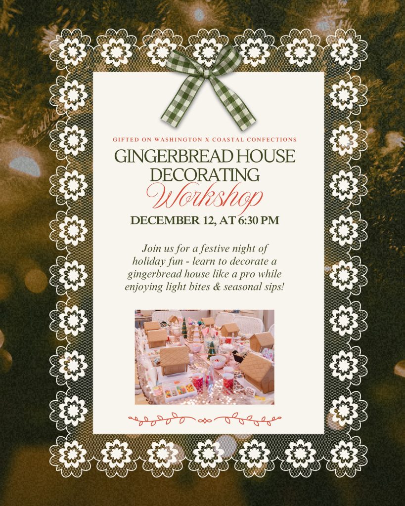A cozy night of gingerbread house decorating is calling – come create some holiday magic with us!