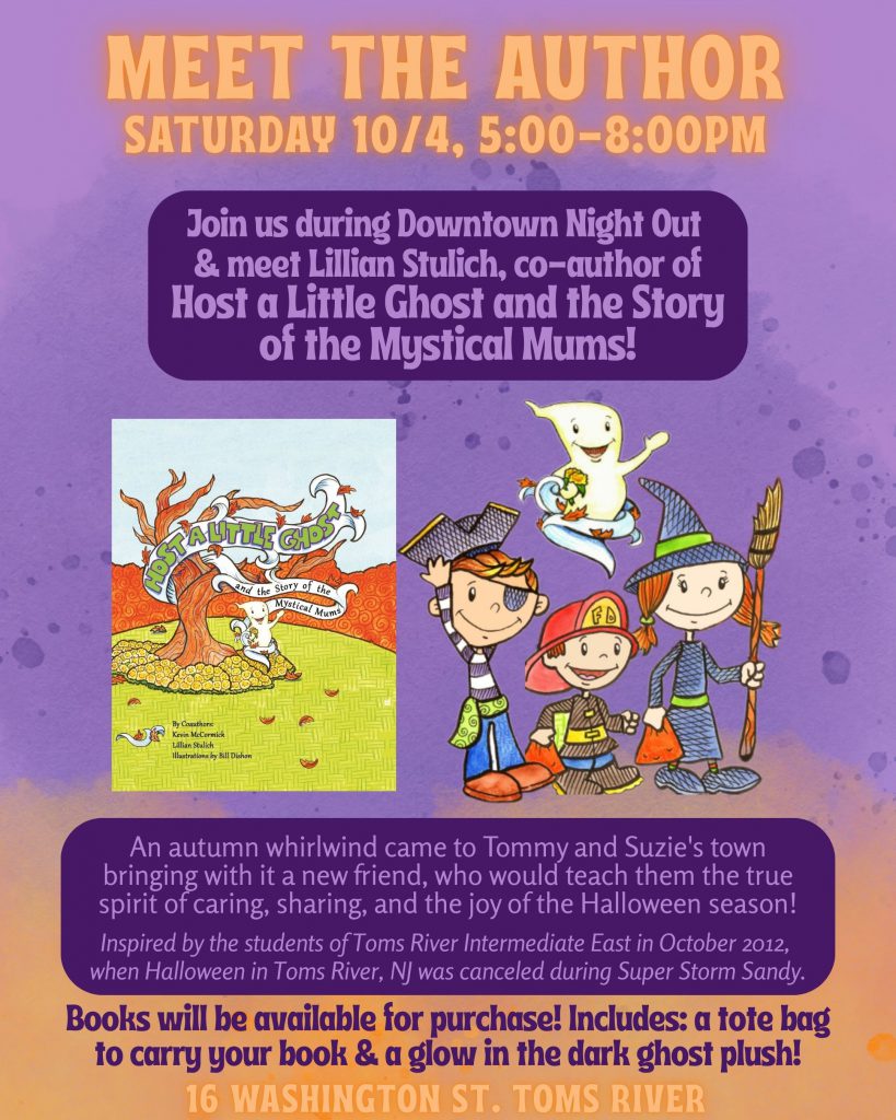 Join us during Downtown Night Out on Saturday 10/4 between 5:00-8:00PM & meet Lillian Stulich co-author of ‘Host a Little host and the Story of the Mystical Mums!’