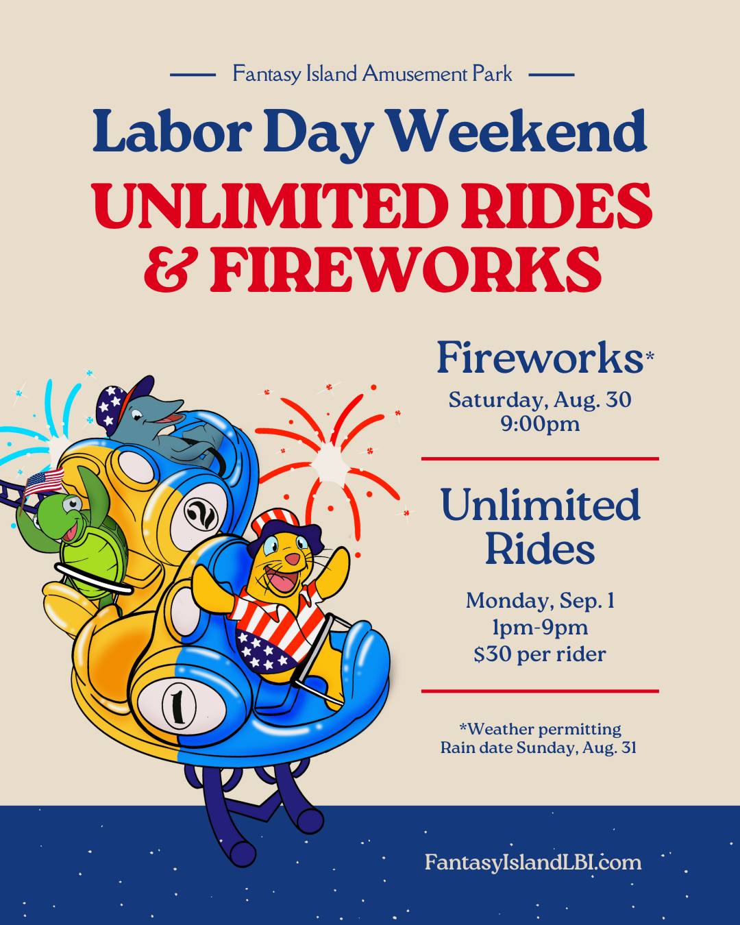Monday, September 1: $30 Unlimited Rides from 1:00pm-9:00pm