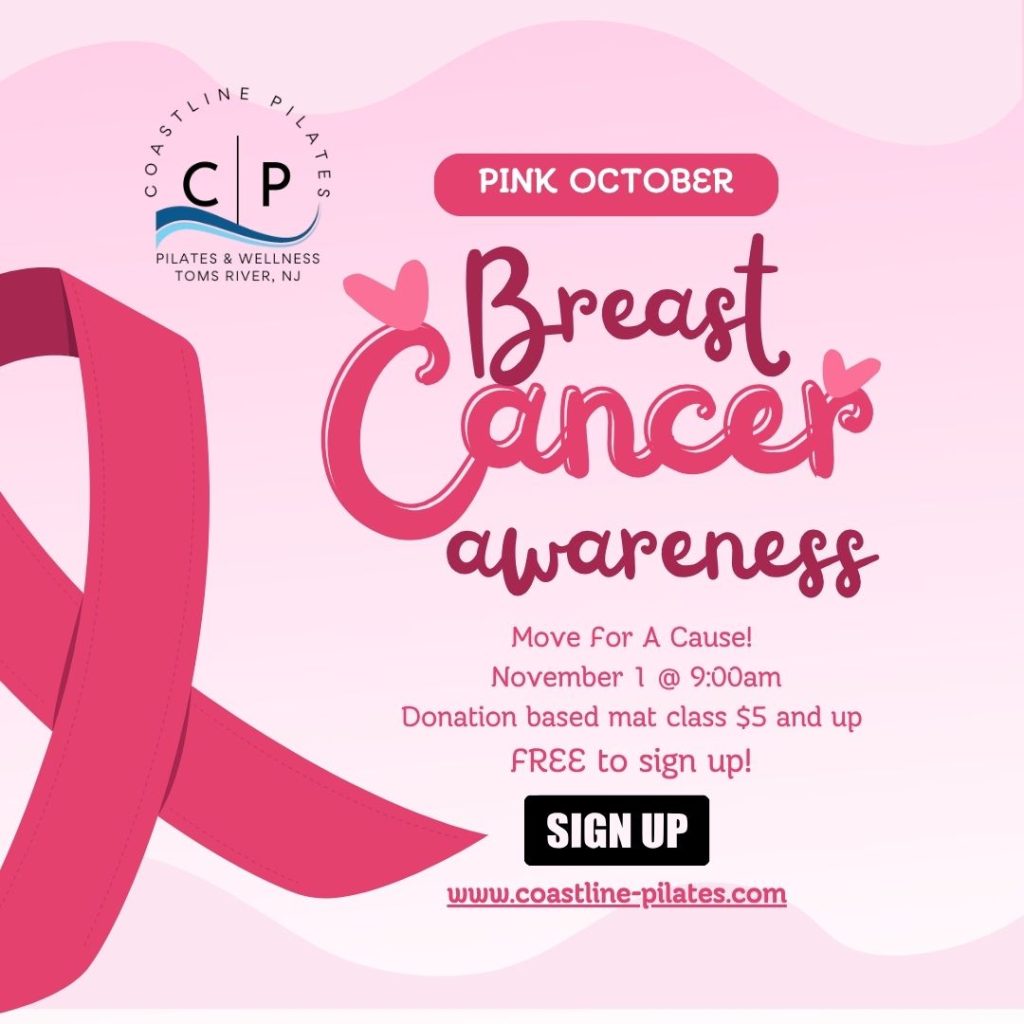 In honor of Breast Cancer Awareness Month, Coastline Pilates and Wellness is hosting a donation-based Pilates Mat Class to support those affected by breast cancer.