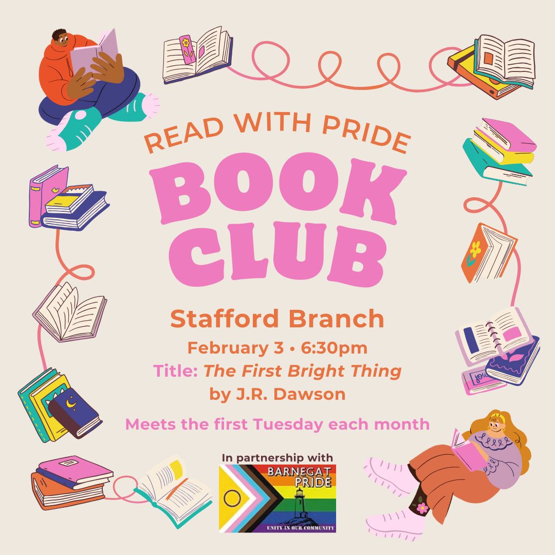 This book club meets on the 1st Tuesday of each month. In February we are discussing “The First Bright Thing” by J. R. Dawson. In partnership with Barnegat Pride.