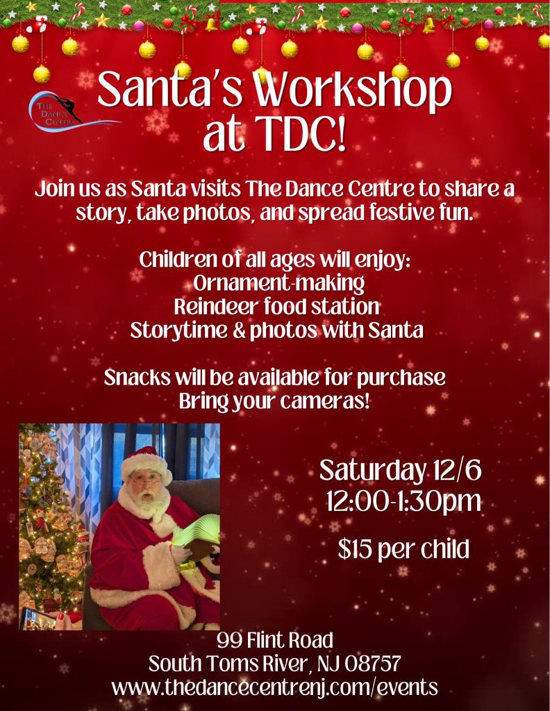 Get ready for a magical afternoon at The Dance Centre! Join us as Santa makes a special visit to spread holiday cheer.