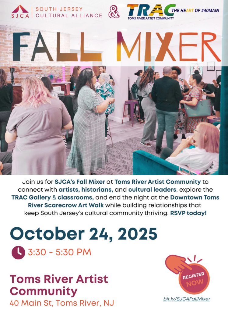 TRAC GALLERY welcome South Jersey Cultural Alliance for a Fall Mixer. Get ready to mingle with your fellow creatives, organizational leaders, business owners, and funders to network.