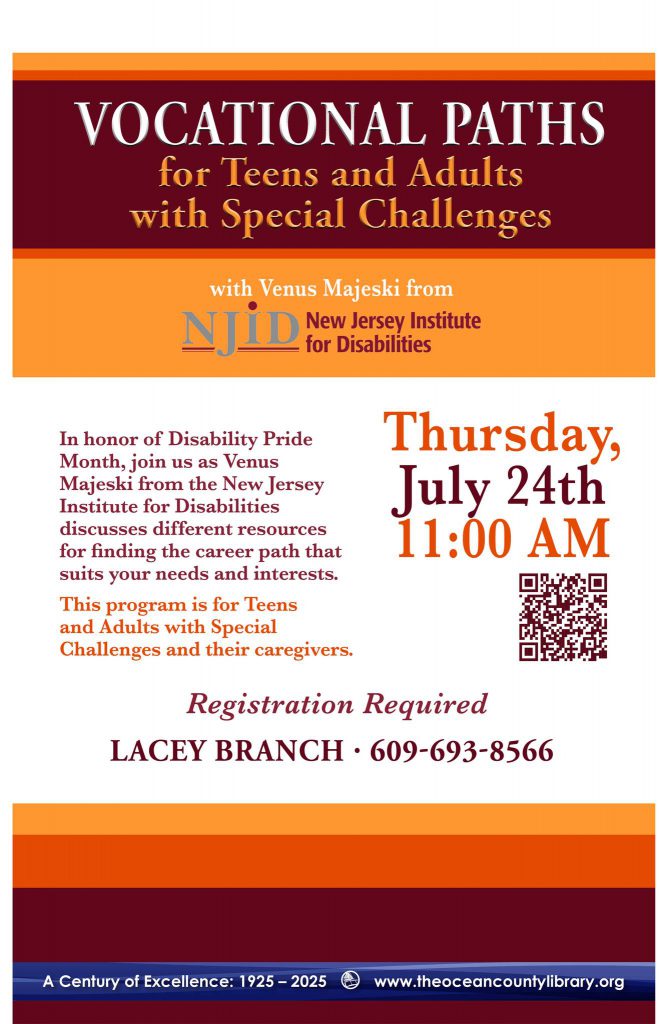 In honor of Disability Pride Month, Venus Majeski from the NJ Institute for Disabilities will share resources for finding the career path that suits your needs and interests.