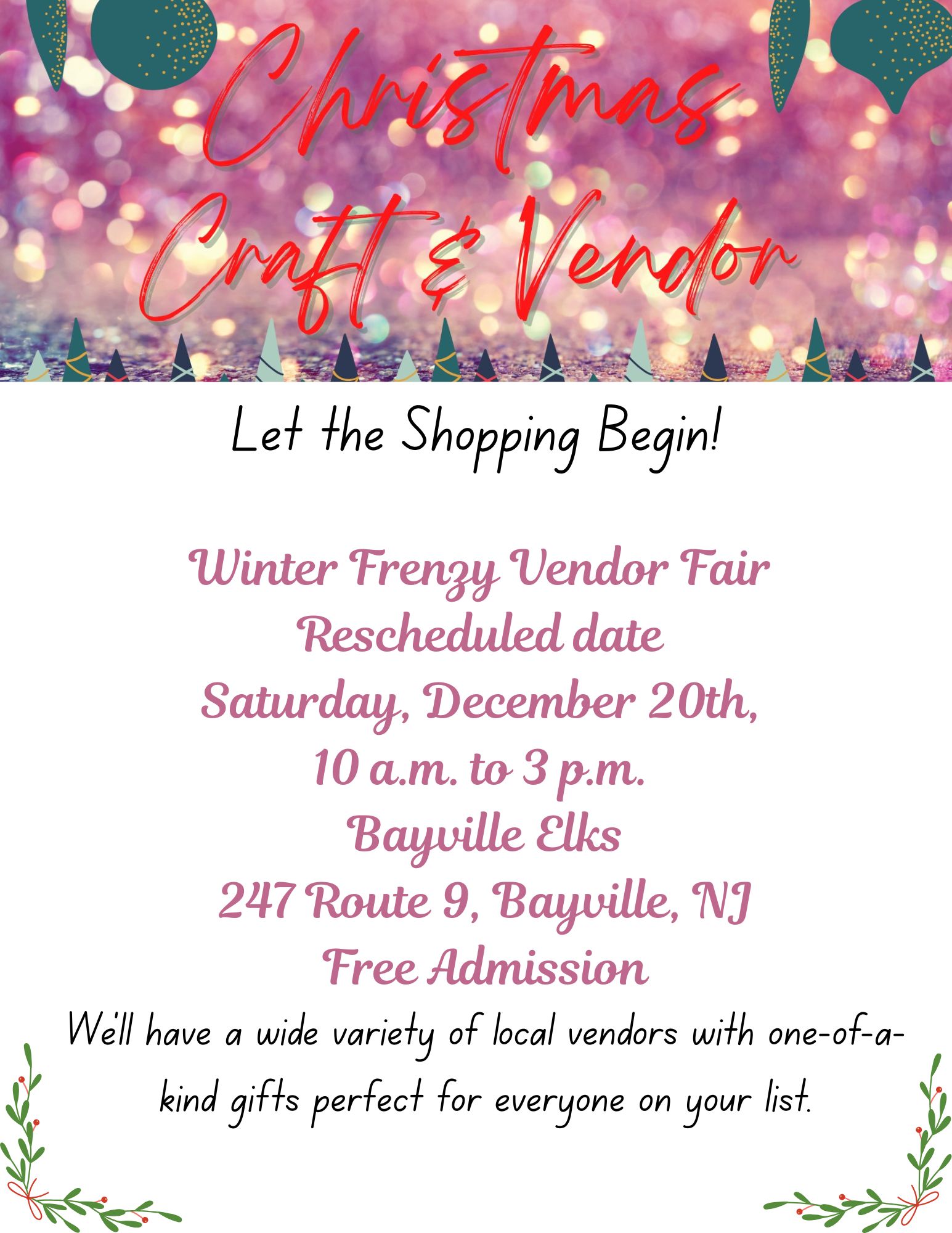 The Barnegat High School Class of 2029 Presents Build-Your-Own Crochet Snowman Saturday, December 20th 12-2 PM Barnegat High School Media Center Tickets $25 Each! Includes: Build-Your-Own Crochet Snowman Activity | […]