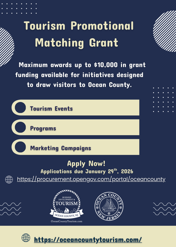 The Ocean County Tourism Promotional Matching Grant applications are now available for 2026!