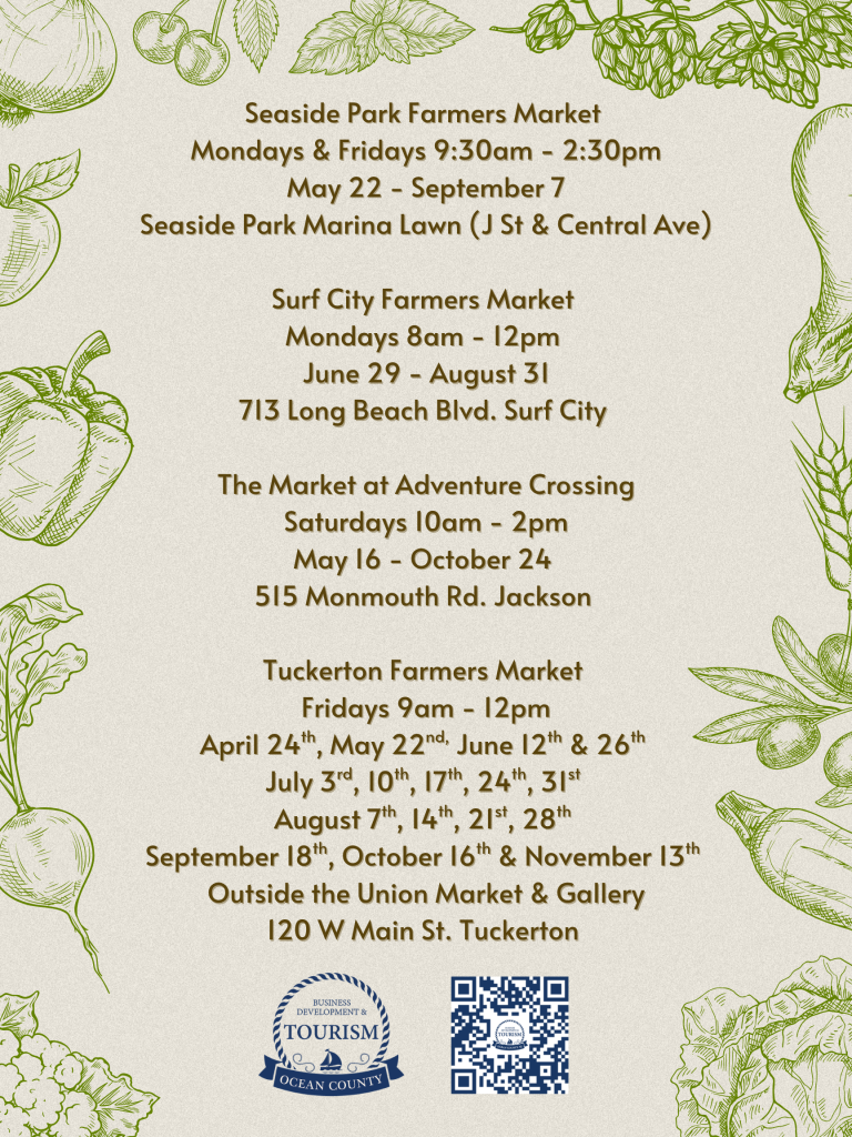 Get fresh, local produce, artisanal goods, and family-friendly fun at farmers markets across Ocean County.