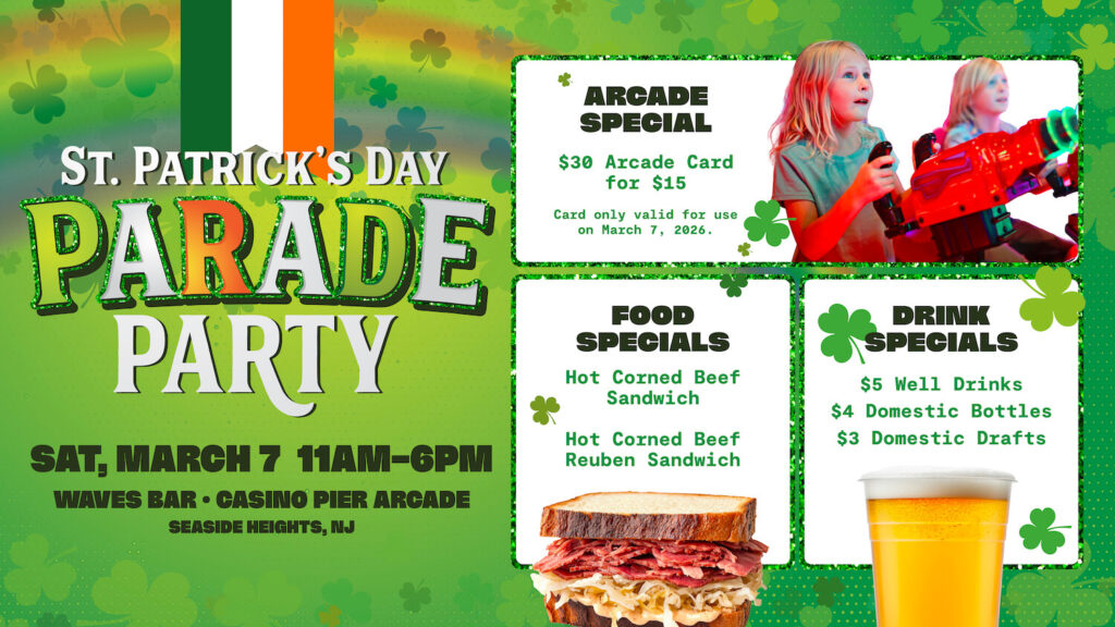 Bring your St. Patty’s Parade Day crew to Waves Bar & Casino Arcade! Parade starts at 12pm on the Boulevard but we have specials ALL DAY for the whole family! from 11am-6pm… Arcade Special:Ā $30 Arcade Card for $15 Card (Card only valid for use on March 7, 2026) Food Specials:Ā Hot Corned Beef Sandwich & Hot […]